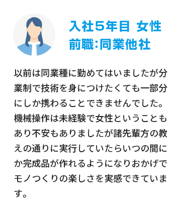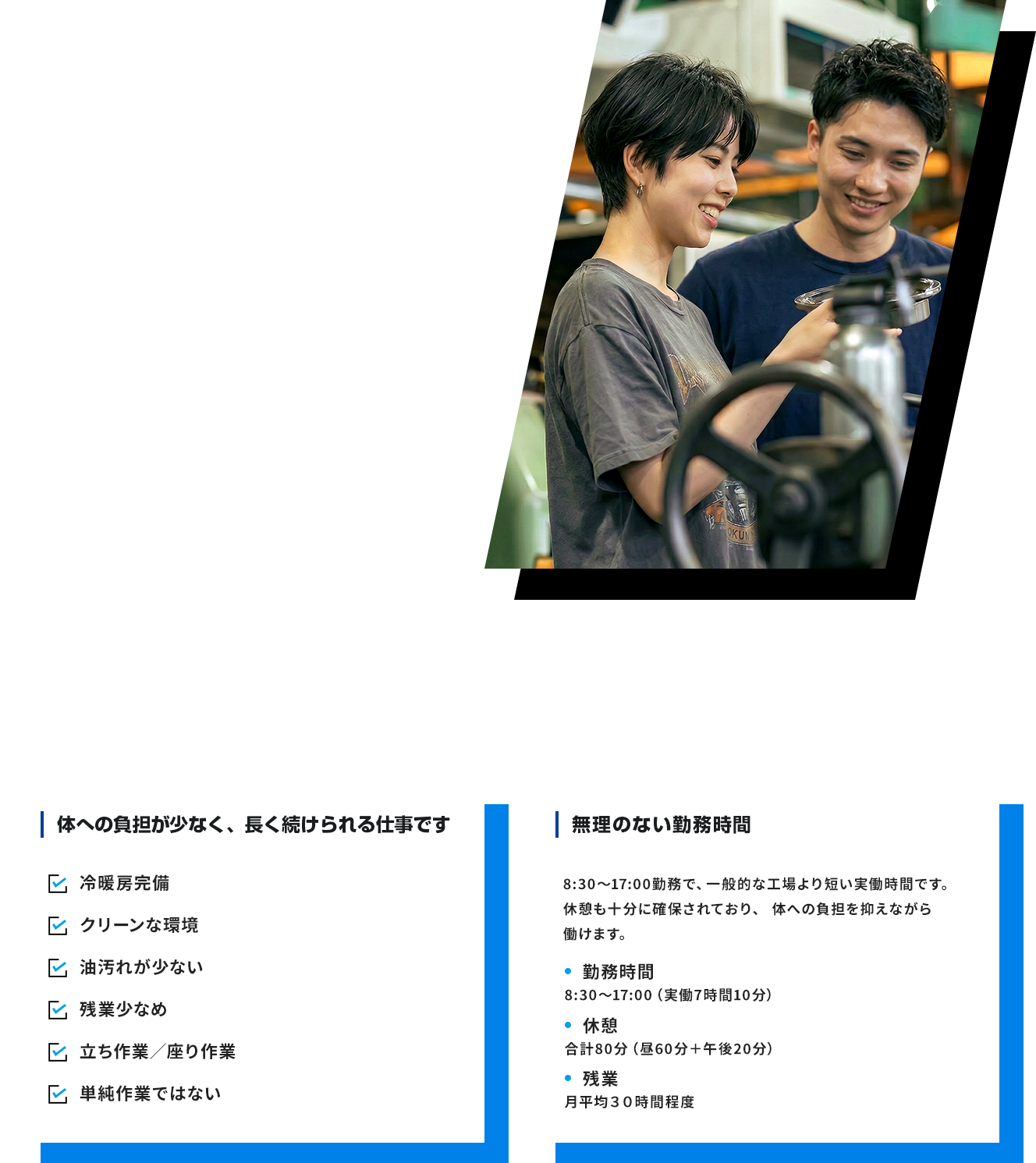 | 資格・経験 | 要普通免許(AT限定可) 高卒以上、機械加工経験者大歓迎! |