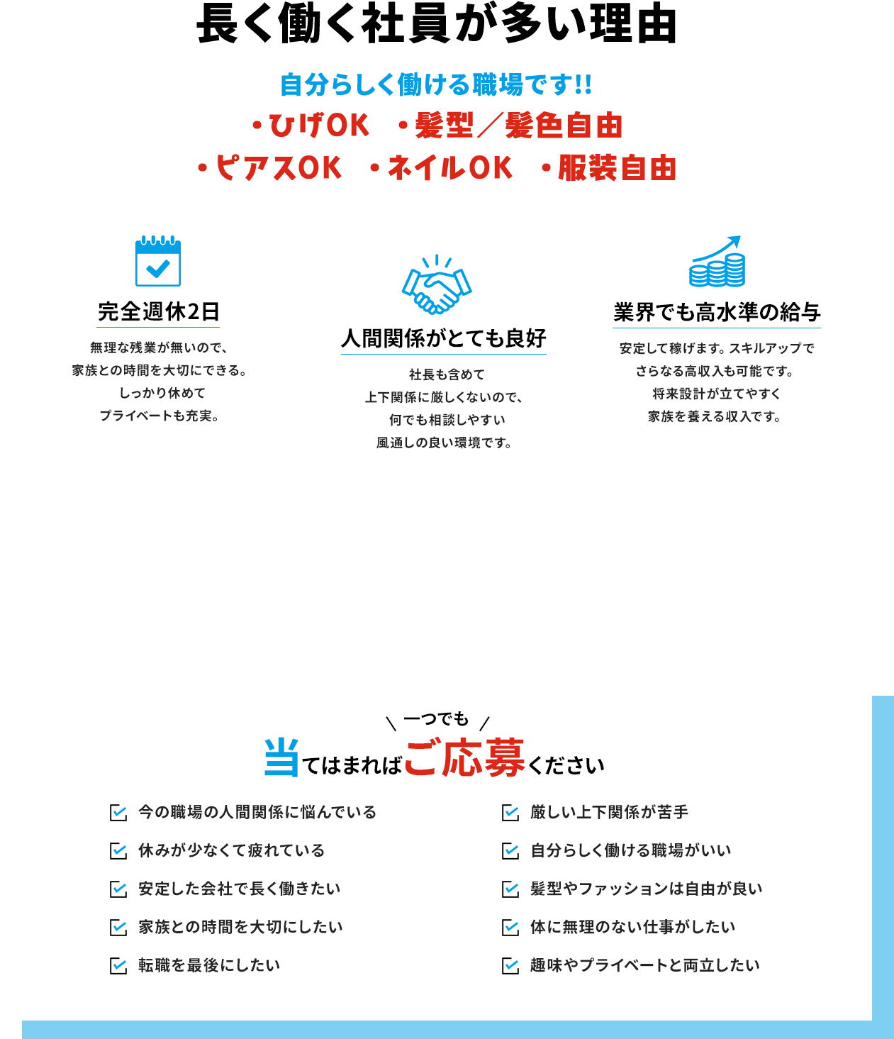 私たちは、社員が安心して長く働ける環境づくりを何より
