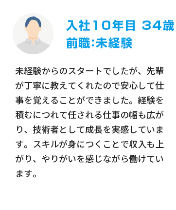 未経験の方でも、先輩が丁寧に指導しますので安心して